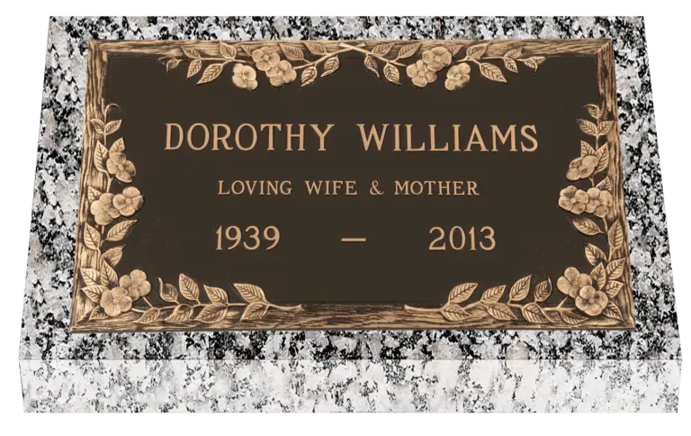 Combine classic looks with modern resilience when you select a Classique memorial. Begin with a background of Old World Brown with pebble texture, oxide finished borders and intricate corner accents. Choose emblems, words of endearment, a vase or even include a photo in a portrait medallion to create a lasting tribute.